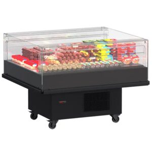 У м’ясному бізнесі головний продаж відбувається очима. Саме тому холодильні вітрини потрібно вибирати особливо ретельно. Оптимальний температурний режим для сирого м’яса — від 0 до +4 °C. Вітрини повинні мати глибину викладки щонайменше 800 мм, щоб розміщувати продукцію великими шматками. Сучасні моделі оснащуються LED-підсвіткою, яка вигідно підкреслює природний колір м’яса, і системами збереження вологості, завдяки яким поверхня продукту не підсихає.