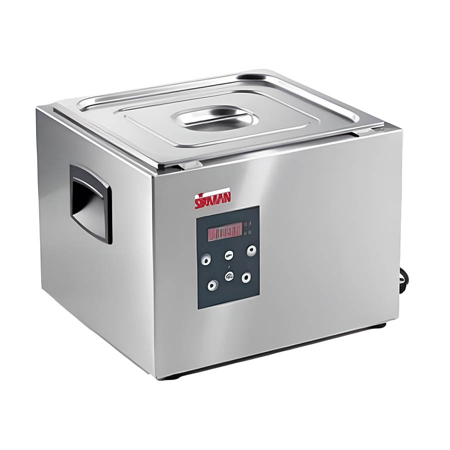 Апарат для приготування при низькій температурі Sirman Softcooker S GN2/3 оснащений точним термостатом, що регулює температуру від 24 до 95°C з точністю до 0,2°C.. Корпус виконаний із спеціальної нержавіючої сталі IP X3.