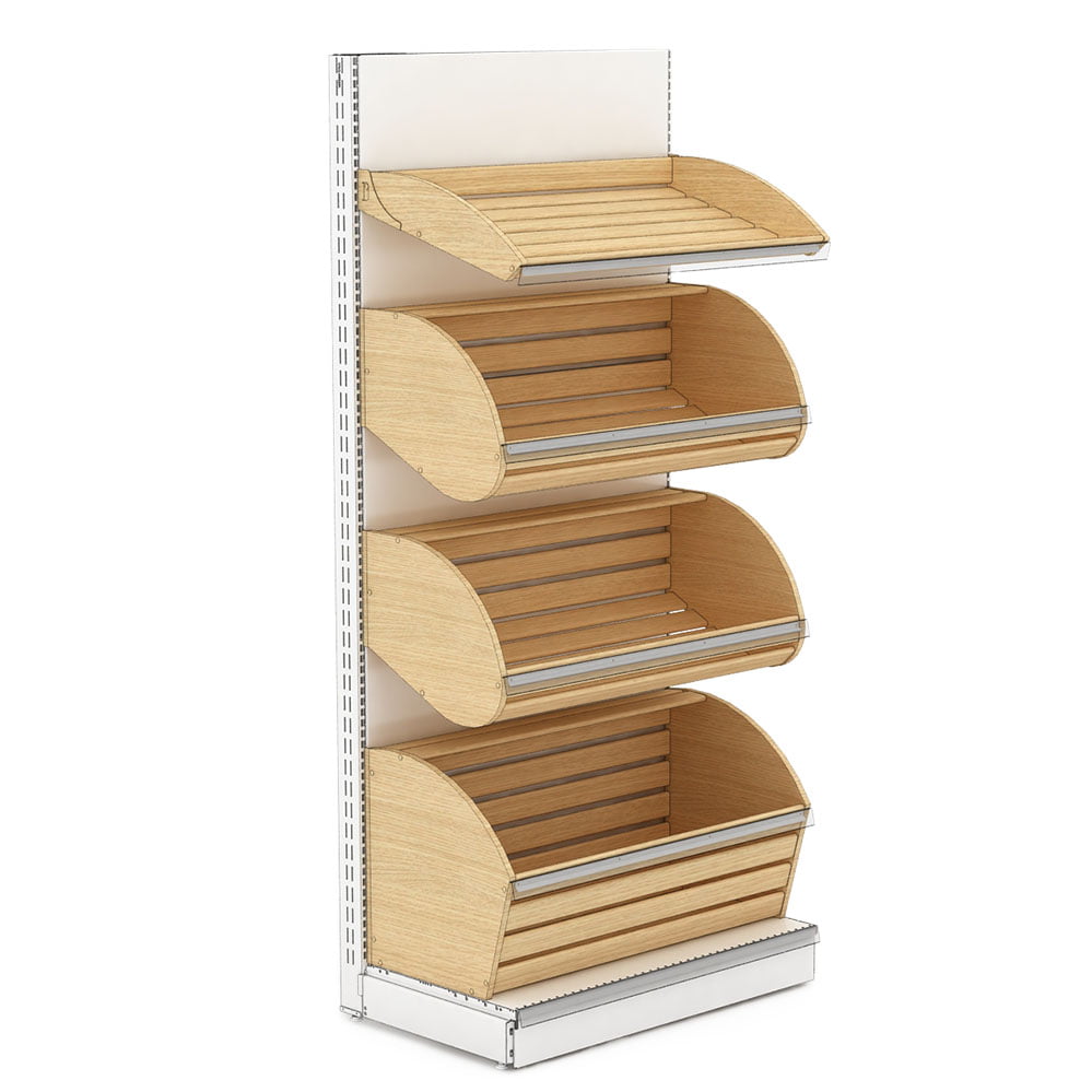 - Продовження терміну придатності продукції. Наявність дерев’яних кошиків у стелажах забезпечує оптимальні умови для зберігання хліба, запобігаючи його швидкому черствінню.
