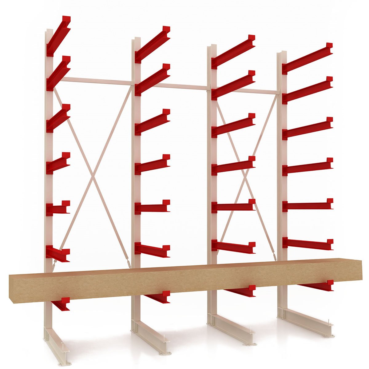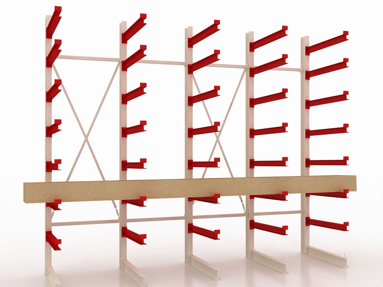- між рядами консолей можна розмістити поздовжні балки для створення стійких опор під палети, ящики чи піддони, що ідеально підходить для організації складу магазину.
