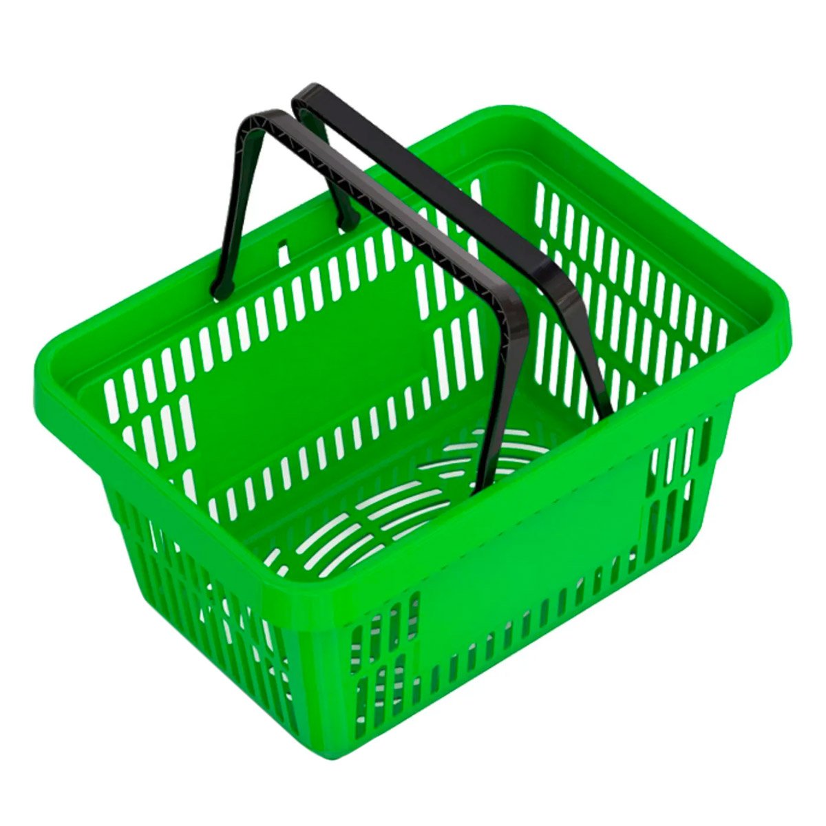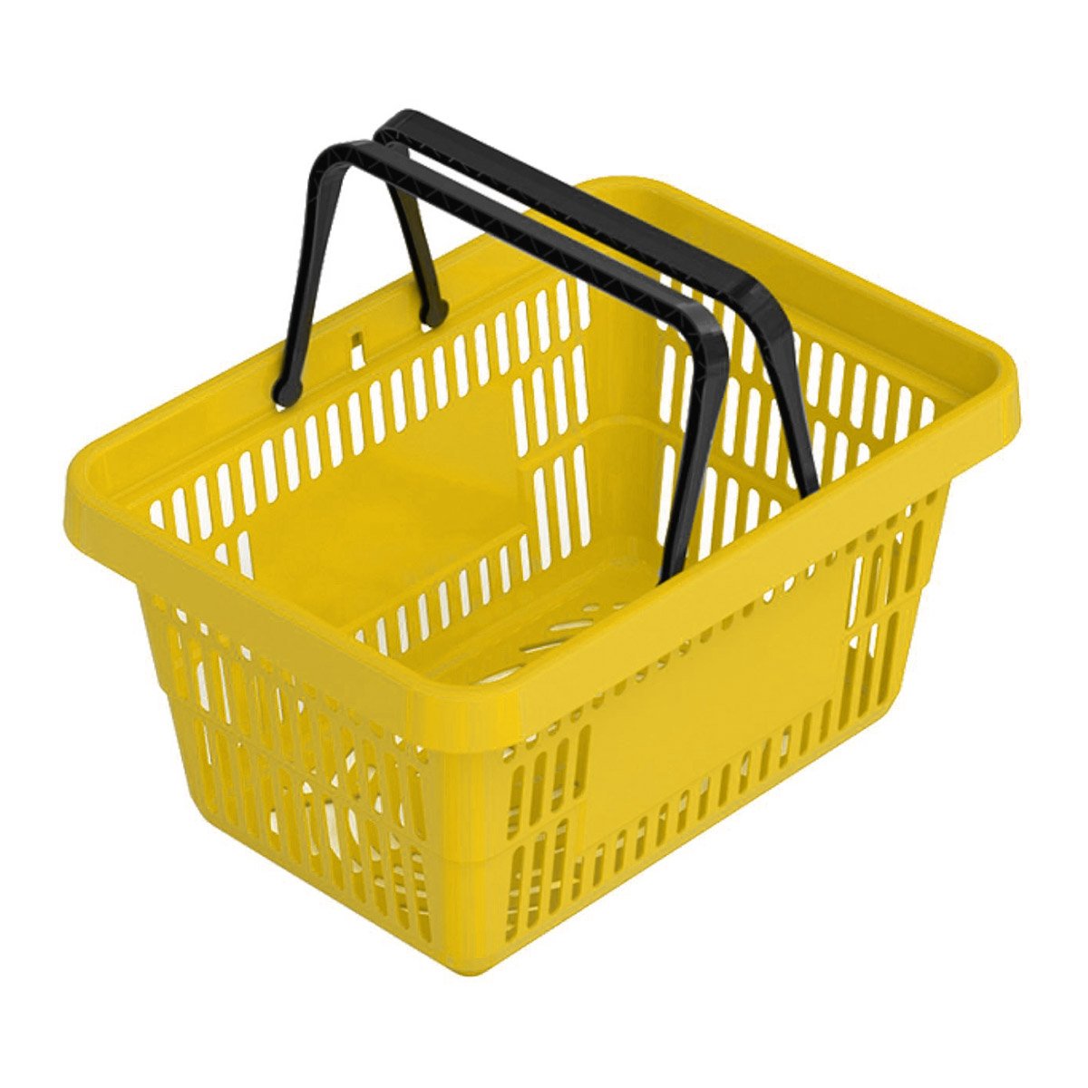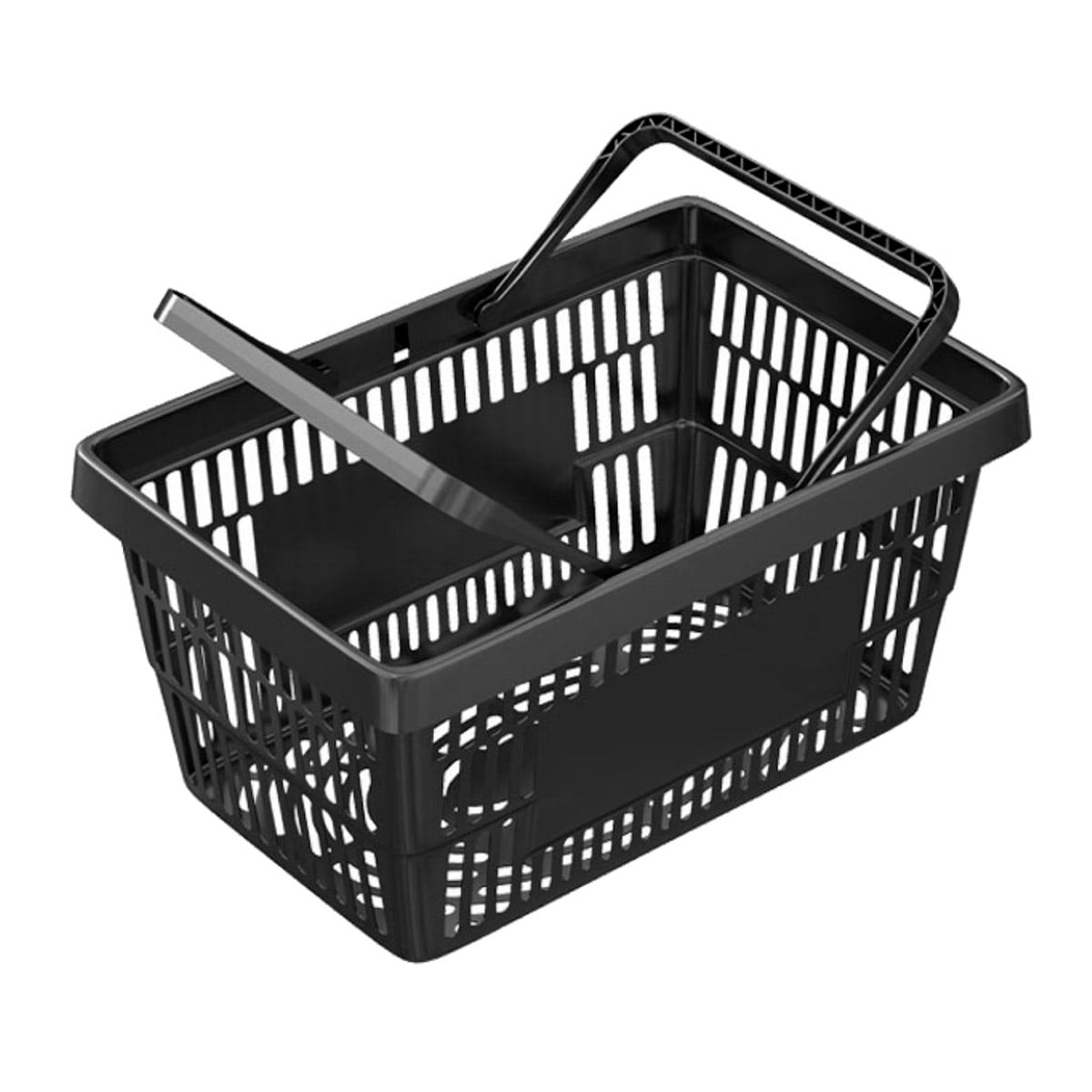 Кошик для покупців пластиковий обсягом 20 літрів з двома посиленими ручками. Основні переваги даної моделі полягають в посиленій конструкції дна і стінок, що дозволяють витримувати великі навантаження по вазі, тим самим збільшуючи термін її експлуатації в 2 рази. Високоякісний пластик, з якого виконаний кошик, наділений ударостійкими властивостями. Складається одна в одну, що дозволяє їх легко штабелювати.