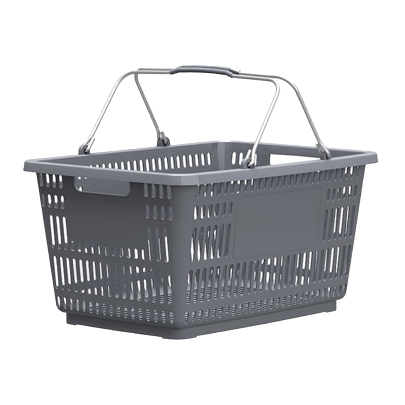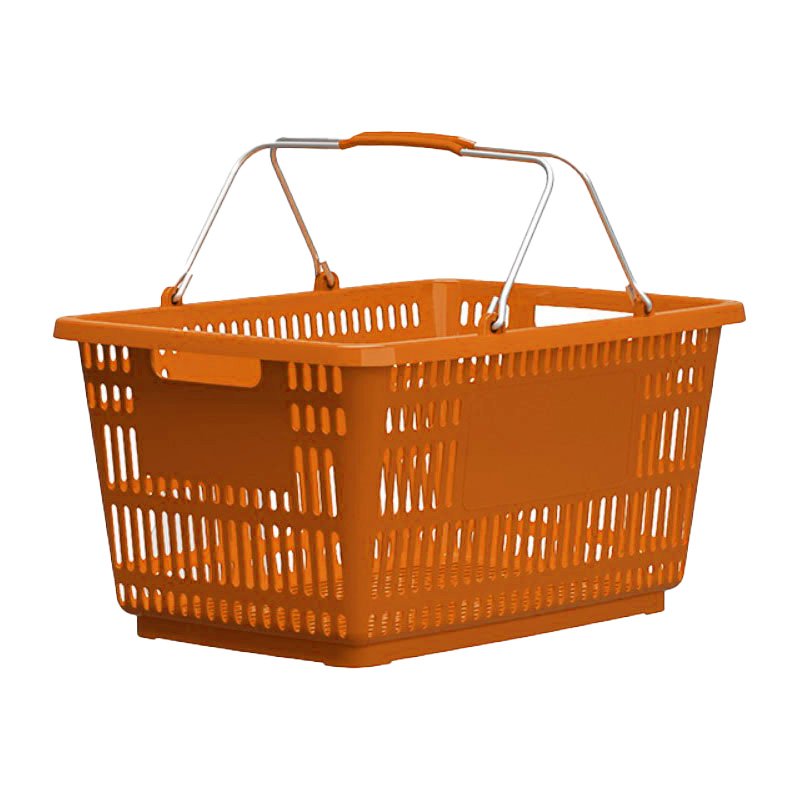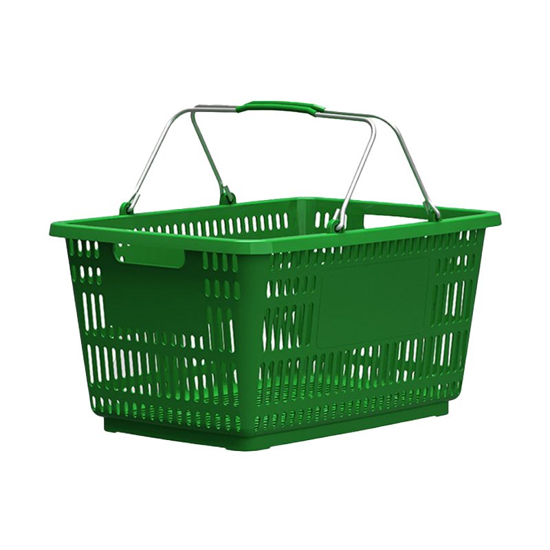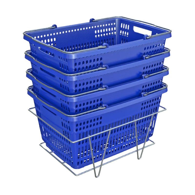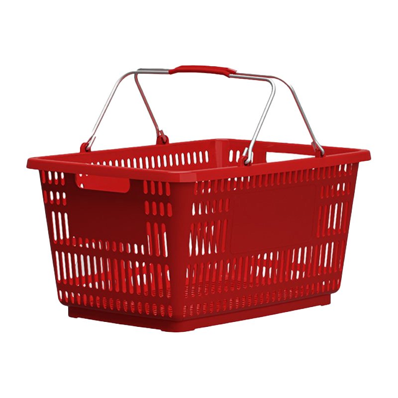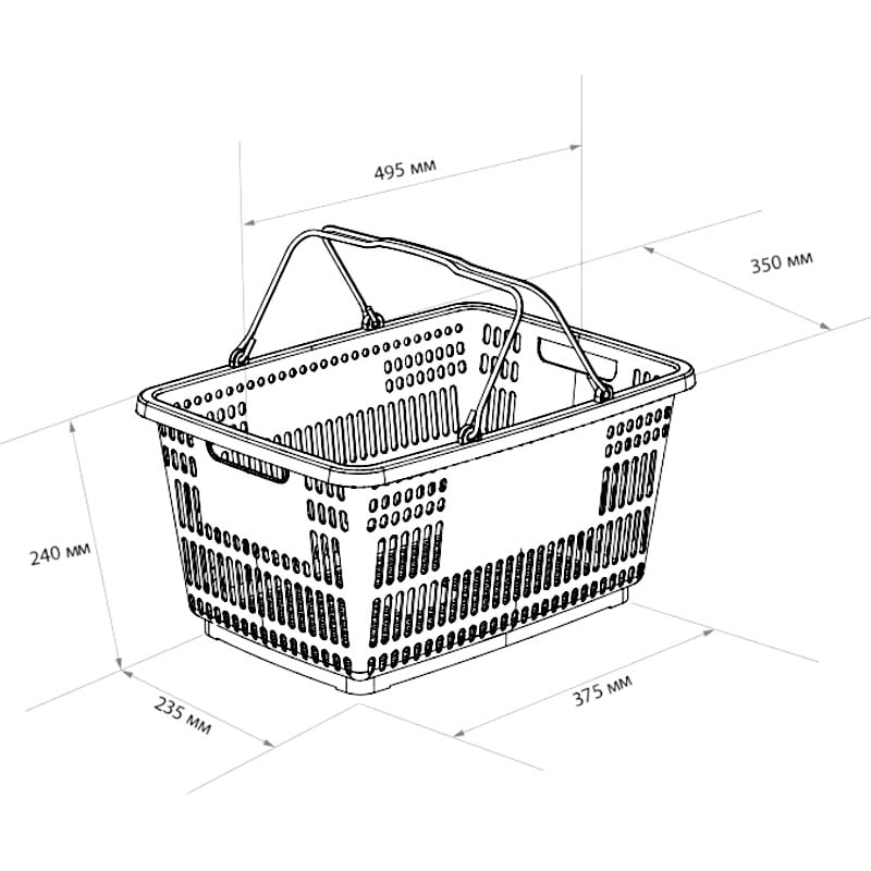 Ручний кошик з підвищеною ємністю дозволяє покупцеві придбати велику кількість товарів. Металеві ручки, посилені борт і дно кошика, забезпечують її зносостійкість та довговічність. Наявність двох ручок дозволяє кошику дотримуватися балансу при нерівномірному розподілі продукції. Вигини ручок зручно лягають в долоню, чим збільшують комфорт перебування покупця в магазині. Кошики легко штабелюються, забезпечуючи порядок в магазині. Завдяки спеціальним отворам в корпусі, які виконують функцію додаткових ручок, кошик вільно виймається зі стопки.