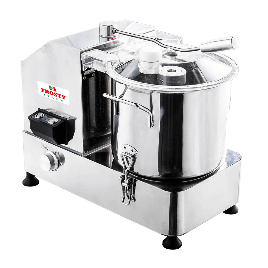 Плавне регулювання швидкості 700-2200 об/хв. Об’єм чаші 9 л.(Ø 253х205h). Потужність 1800Вт. Напруга 220В. Габарити: 480х320х445. Ніж 2 лопасіт з гладкими лезами. Матеріал нержавіюча сталь.