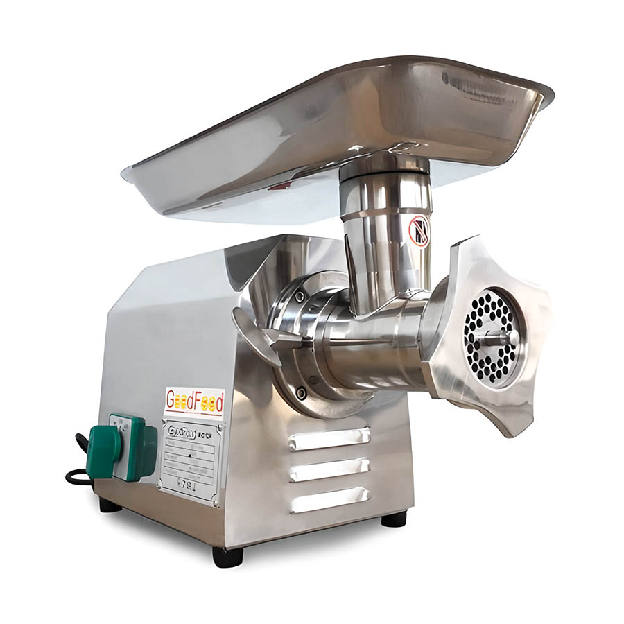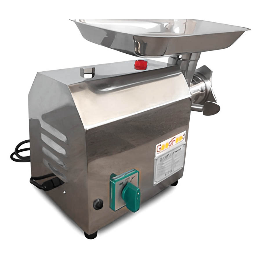 Система Enterprise (1 ніж + 1 решітка). Функція реверсу. У комплекті дві решітки 4мм, 6мм, два ножі та насадка для ковбас 16мм, 19мм та 22мм . Продуктивність до 150 кг/година. Корпус, горловина та шнек з харчової полірованої нержавіючої сталі. Захист від перевантажень. Двигун вентильований. Потужність 750 Вт. Захист від перепаду напруги. Швидкість 180/215 об/хв. Стійка широка основа, гумові ніжки. Напруга: 220В/50Гц. Габаритні розміри: 450х240х320 Вага: 27 кг.