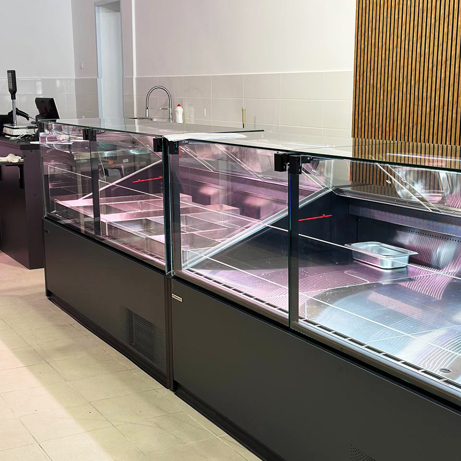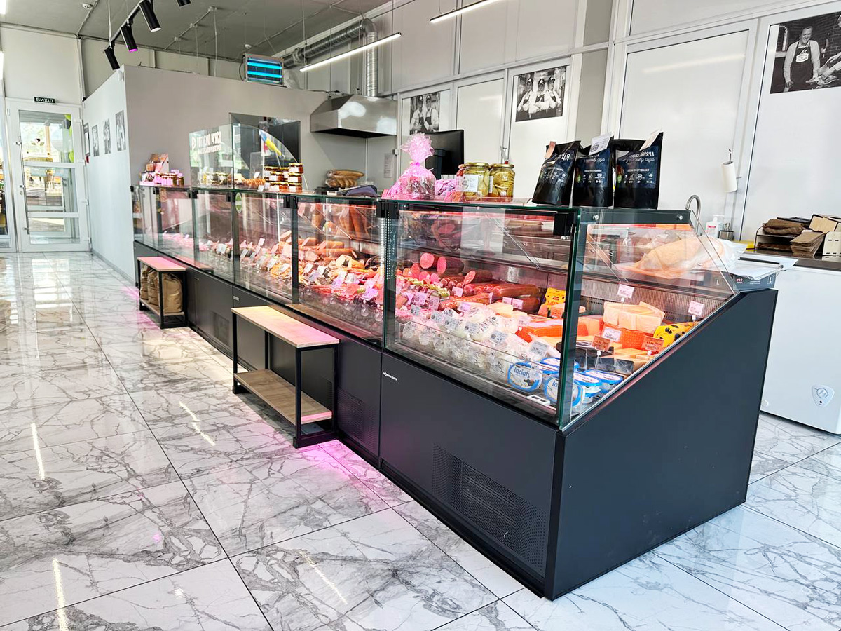 - Температурний режим. Вітрина забезпечує стабільний температурний режим від 0 до +7°C, що ідеально підходить для збереження свіжості м’ясних продуктів.