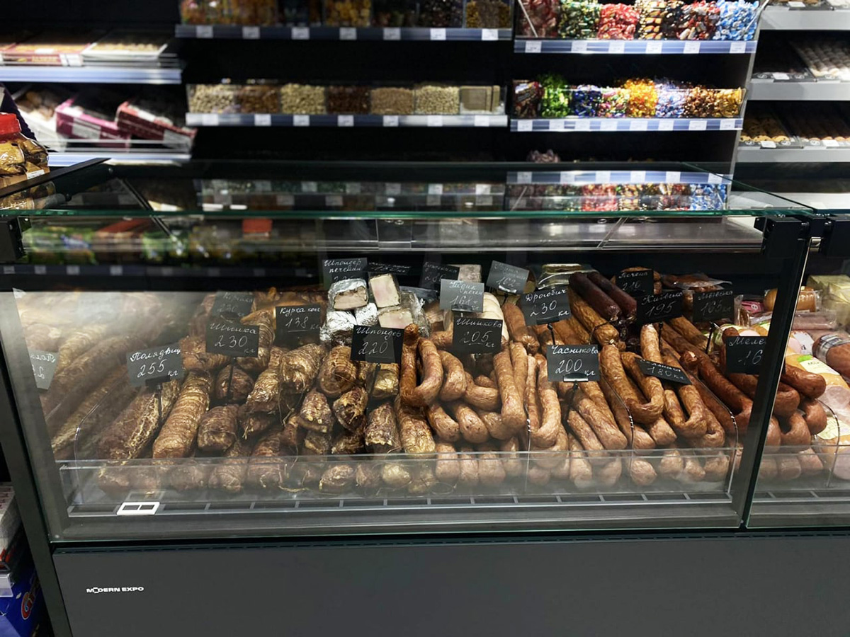 - Регульовані полиці. Можливість регулювати полиці за висотою дозволяє оптимально використовувати простір вітрини, адаптуючи його під розміри різних м’ясних виробів.