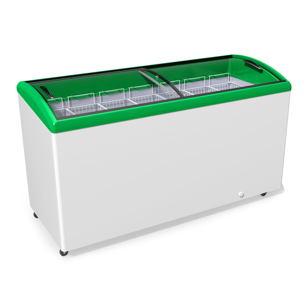 Морозильна скриня з гнутим склом – це професійне холодильне обладнання для зберігання та реалізації морозива, напівфабрикатів та інших заморожених продуктів. Ця модель має скошене скло та світлодіодне освітлення для покращення видимості та презентації продуктів у пристрої. Корпус пристрою виготовлений з міцного, ударостійкого ABS-пластику із захисним покриттям RMMA. Широка палітра кольорів пластику дозволяє підібрати обладнання до стилю вашого магазину. Пристрій є енергоефективним і надійно працює при температурі навколишнього середовища до +35°C.