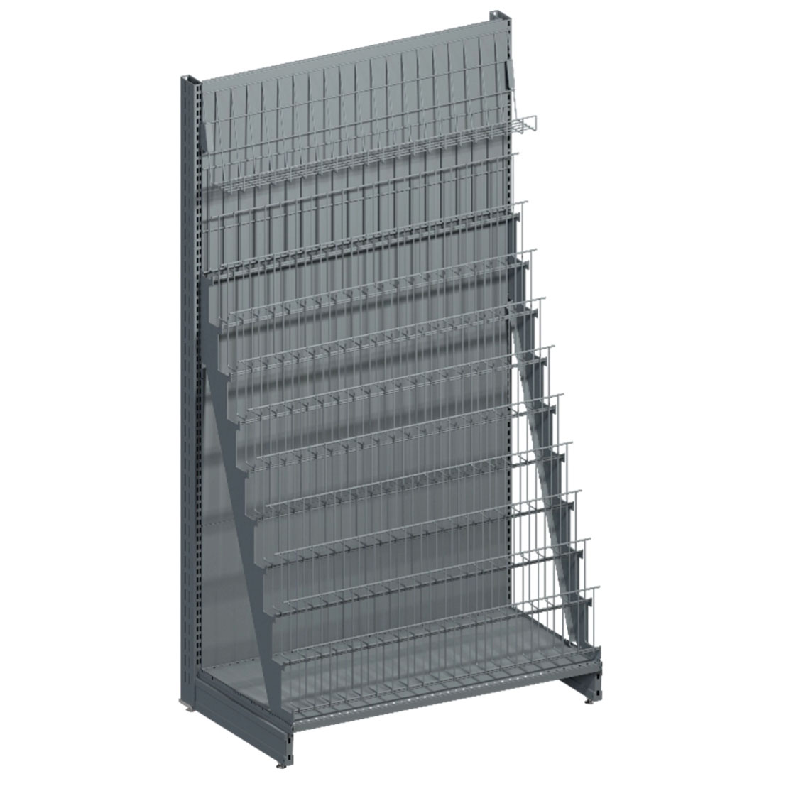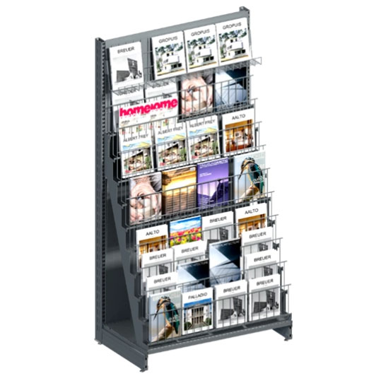 Стелаж для преси дозволяє ефективно організувати і впорядкувати газети й журнали у магазині. Він надає спеціальні полиці та відділення, де видання можуть бути розміщені у порядку випуску чи категорії. Це допомагає покупцям швидко знайти видання, що їх цікавлять, і створює систематичне розташування преси. Відділення стелажа ґратчасті, тому вони створюють зручний простір, де покупці можуть легко переглядати різні видання та вибирати номери, що їх цікавлять. Це сприяє задоволенню потреб покупців і підвищенню ймовірності продажу. Конструкція цієї моделі вертикальна, що дозволяє максимально розкрити асортименти видань, не займаючи багато місця в магазині.