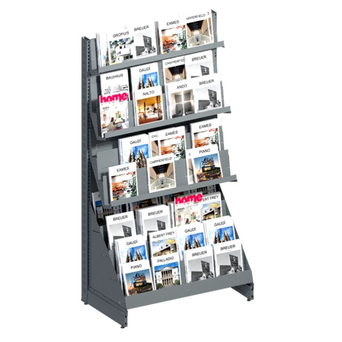 Досить часто в магазинах, супермаркетах або торгових центрах ми зустрічаємо спеціальні стелажі, де розміщується така продукція, як книги, журнали тощо. Це так звані стелажі під медіа. Полиці в таких стелажах відкриті й мають оптимальну глибину та висоту, що добре підходить для розміщення преси. Інколи полиці в стелажі для медіа можуть розміщуватися під кутом. Це необхідно для того, щоб забезпечити найкращу демонстрацію товару з різних боків і заохотити відвідувача купити медіа. На замовлення доступні стелажі різних розмірів і дизайнів. Усі вони виконані з надійного металу, тому служитимуть вам досить довго. Під час замовлення стелажа під медіа ви можете озвучити свої побажання щодо кольору та фінішного покриття. У результаті ви отримаєте стелаж, який буде не лише функціональним, а й ідеально впишеться в інтер’єр приміщення.