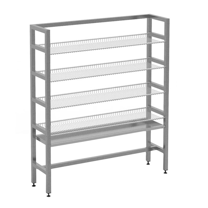 Ключова особливість металевих стелажів — виготовлення їх із високоякісної нержавіючої сталі (AISI 304 або AISI 430). Такий тип металу є гігієнічним, стійким до появи корозії та не піддається впливу агресивних мийних речовин. Це дозволяє безпечно зберігати та сушити посуд, столові прилади, обробні дошки та різноманітне приладдя, яке використовується на професійній кухні, а також продукти харчування та напої.