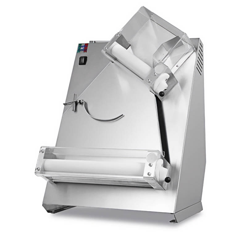 Електрична тісторозкачувальна машина ідеально підходить для невеликих піцерій, пекарень і кафе, завдяки своєму невеликому розміру, економічності та простоті використання. Застосовується для розкочування тіста для піци та інших тонких коржиків. Товщина заготівлі, що розкочується, регулюється від 0,5 до 4 міліметрів. Електричний двигун з термозахистом та вентилятором.