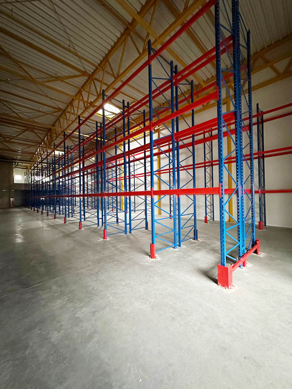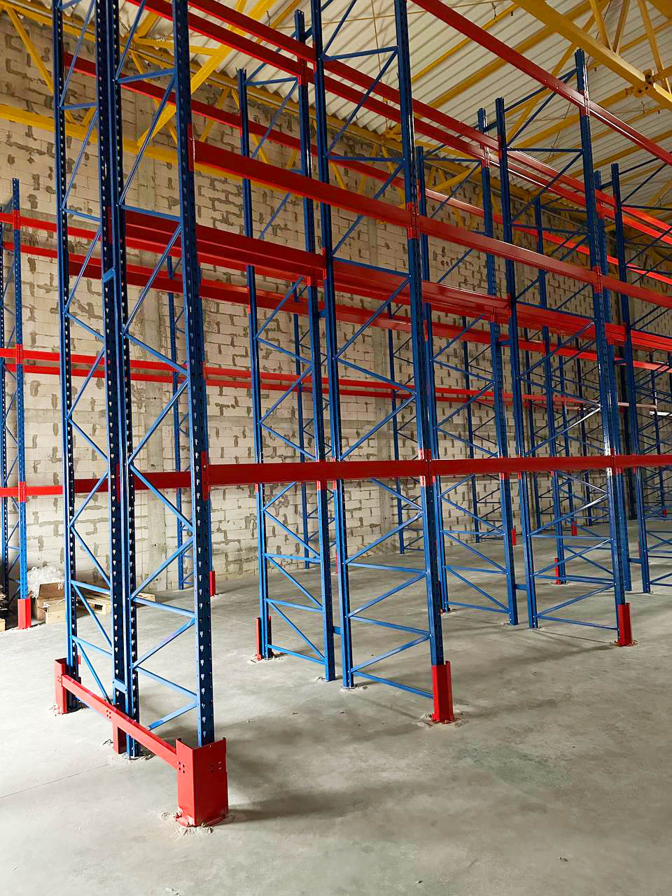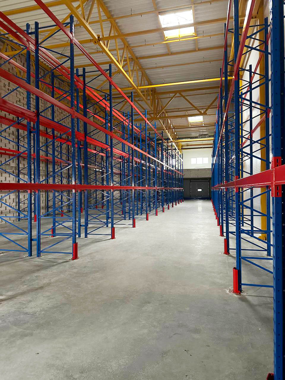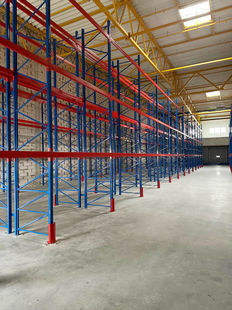 - Доступна висота конструкції визначається довжиною кожної стійки стелажної системи. Вибирається з урахуванням доступної висоти приміщення та необхідної ярусності зберігання.