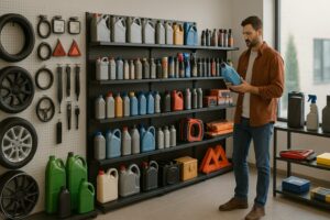Автохимия должна храниться в шкафах с вентиляцией и защитой от протечки, мелкие запчасти — в ячеистых системах с четкой маркировкой.