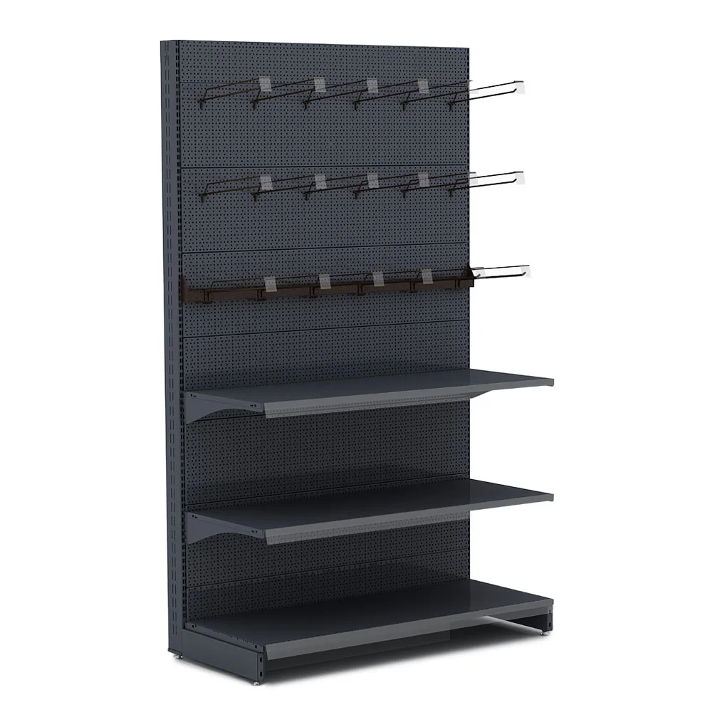 Основным элементом любого зоомагазина являются стеллажи. Они задают структуру торгового пространства и позволяют оптимально разместить основной ассортимент. Для кормов подойдут прочные металлические стеллажи с грузоподъемностью от 100 до 150 кг на полку. Такие полки выдержат даже самые тяжёлые упаковки до 20 кг. Глубина в 40–50 см обеспечит удобное размещение как крупных, так и мелких товаров.