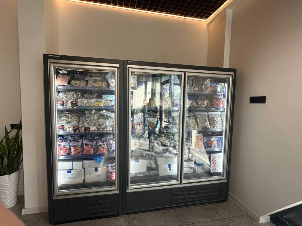 Для хранения замороженной рыбы и морепродуктов необходимы морозильные камеры с оптимальными условиями для длительного хранения. Морозильные камеры для рыбных магазинов должны поддерживать стабильную низкую температуру — обычно от -18°C до -24°C, что предотвращает порчу продуктов и сохраняет их качество.