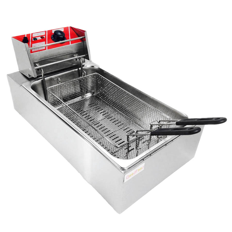 Фритюрница + чебуречница предназначена для приготовления картофеля-фри, мяса в панировке, рыбы в кляре, котлет по-киевски, пирожков, чебуреков и пончиков. Профессиональная фритюрница пригодится как на кухне крупного ресторана или отеля, так и в небольших кафе и киосках фаст-фуда.