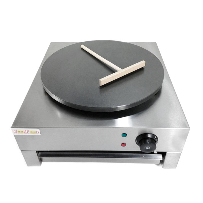 Блинница электрическая однопостовая диаметром 400мм. Рабочая поверхность из чугуна с антипригарным покрытием. Корпус изготовлен из нержавеющей стали.