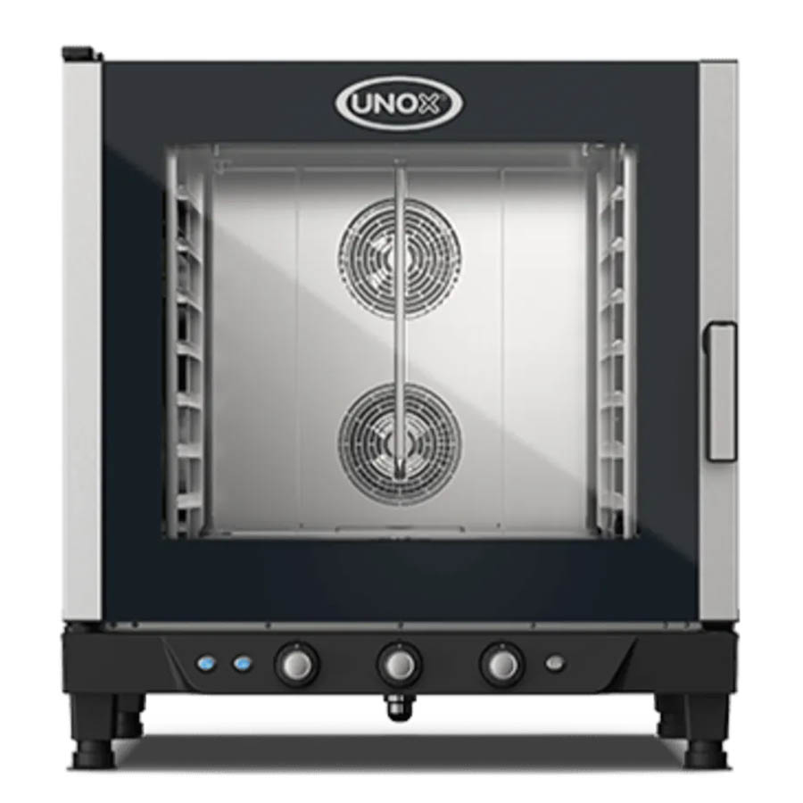 Корпус — нержавеющая сталь, вместимость 7 дек GN 1/1. Температура +30…+260°C. Ручной впрыск пара, механическая система управления. Расстояние между противнями 67 мм.