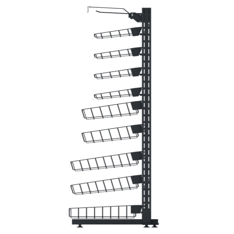 Прикассовый стеллаж торцевой — это боковая или фронтальная поверхность, которая обращена к покупателям и предназначена для выкладки и демонстрации товаров на прикассовом стеллаже. Прикассовый стеллаж торцевой играет важную роль в привлечении внимания покупателей к различным товарам и может использоваться для размещения акционных предложений, новых продуктов или товаров, которые могут вызвать импульсные покупки. На торце прикассового стеллажа обычно размещаются горизонтальные полки или крючки для выкладки товаров. Эта область может быть оформлена яркой и привлекательной рекламой или маркетинговыми сообщениями, чтобы привлечь внимание и стимулировать покупателей к дополнительным покупкам. Прикассовый стеллаж торцевой является важной частью мерчендайзинга и маркетинговой стратегии в розничной торговле, поскольку они могут способствовать увеличению объема продаж и усилить влияние на покупателей в последний момент перед завершением покупки. Комплектация данной модели стеллажа может варьироваться в зависимости от ваших желаний и предпочтений, и состоит из: корзина малая, корзина средняя, корзина большая, крючки одинарные с ценником, ценники.