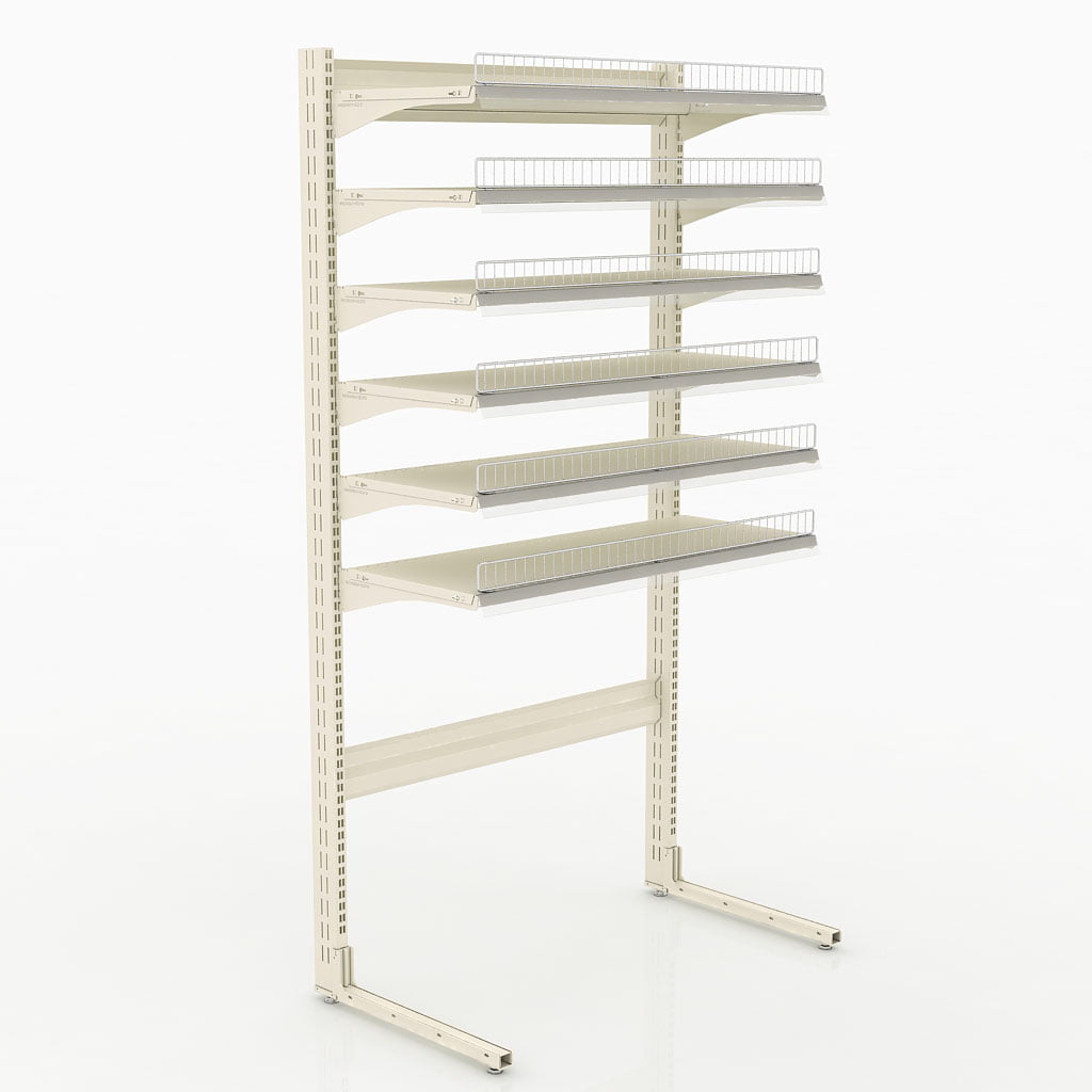 Благодаря своей универсальности, Стеллаж без стенки позволяет максимально-эффективно использовать имеющуюся торговую площадь магазина. Удобная конструкция Стеллажа без стенки обеспечивает максимальное заполнение магазина.
