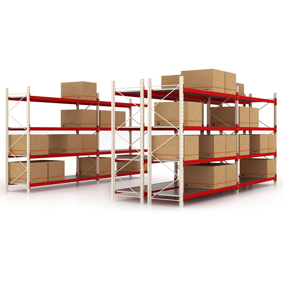 - Эти стеллажи характеризуются широкими полками и большей глубиной по сравнению с традиционными стеллажами, что делает их идеальными для хранения крупногабаритных, громоздких и тяжелых предметов.
